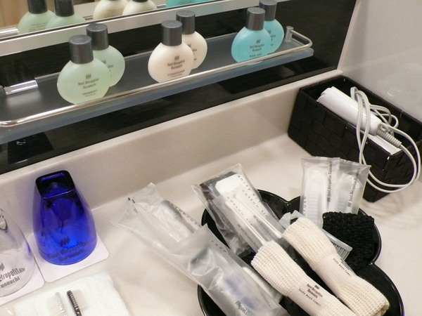 3. 飯店所為旅客準備的盥洗用具也很齊全(甚至還有準備在洗澡時可以用來去身體角質的擦布)